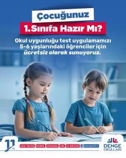 Okula başlamak, minikler için yepyeni bir serüvenin kapılarını aralar! Denge Okulları olarak, 5-6 yaş aralığındaki öğrenciler için hazırladığımız ücretsiz okul uygunluğu testimiz ile bu sürece en doğru şekilde hazırlanmanıza destek oluyoruz.